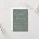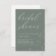 Reúne a sus seres queridos para una celebración especial con esta elegante invitación diseñada específicamente para su ducha de novia. Delicadamente elaborado, presenta un sofisticado guión escrito a mano en blanco sobre un fondo de flores de aliento de bebé de color verde salvia y sutil, exuberante elegancia.