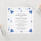 Duchar a la novia para que esté con esta invitación a la ducha de novia al estilo talavera. Esta invitación mexicana se inspira en las bellas baldosas y el arte folclórico que se encuentran en México y en todo el suroeste americano. El llamativo color azul y la tipografía clásica crean un ambiente elegante, moderno y tradicional. A tus invitados les encantará recibir esta hermosa invitación de talavera.
