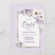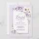 Invite a sus amigos y familiares a que asistan a su ducha nupcial con esta elegante invitación a la ducha con flores moradas. Puede agregar sin esfuerzo todos los detalles necesarios al texto del personalizable. Elija entre varios tipos de papel y estilos de esquina para que sus invitaciones sean únicas. Además, tiene la opción de descargar la invitación si prefiere un formato digital.