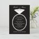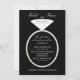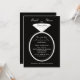 Esta invitación única a la ducha de novia negra incluye el nombre de la novia dentro de un diamante y los detalles de la invitación dentro del anillo. Una invitación única para una ducha de novia. Copyright henishouseofpaper