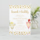 Invitación a la ducha de novias con flores de brunch y bubbly, con puntos falsos de polka de Relieve metalizado dorado.