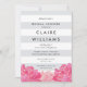 Las invitaciones a la ducha de moda con rayas florales a rayas de  marrón-marrón incluyen amplias rayas grises y blancas con una agrupación de flores de maní acuarela a lo largo de la parte inferior con una acuarela de cuarzo rosa brillante y rosa. Añade tus detalles de la ducha de novia en una elegante mezcla de letras en bloques y guiones en coordinación gris y negro. Las tarjetas se revierten a rosa de cuarzo rosa sólido.