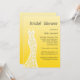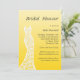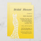 Un hermoso vestido de encaje vintage representa esta oscura invitación a la ducha de novia, en un fondo amarillo mariposa.