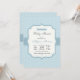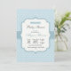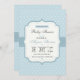 Una encantadora invitación a la ducha de bebé de color azul claro con puntos de polka blanco y un marco elegante que contiene la información de tu fiesta.