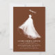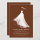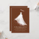Estas invitaciones a la ducha de novias son una verdadera encarnación de las emociones de la novia y el encanto encantador de su próximo boda. El diseño es una obra maestra de la elegancia y el minimalismo, que exhibe la silueta de la novia en un impresionante vestido de boda blanco. Esta narrativa visual evoca un ambiente romántico y etéreo, generando una sensación de asombro nostálgico. El ilustracion se representa con pinceles artistalmente rudos que se fusionan en un fondo de terracota profundo, enriqueciendo aún más el atractivo visual del diseño. En un equilibrio entre simplicidad y profundidad, el diseño habla de la gracia de la novia y de la elegancia del boda, asegurando que las invitaciones dejen una marca indeleble en los corazones de los destinatarios. Esta invitación no sólo anuncia un evento sino que también cuenta una historia de amor, anticipación y el viaje a un nuevo capítulo de la vida, lo que lo convierte en un preludio inolvidable para la celebración del boda.