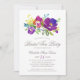 Una romántica y moda invitación a la ducha de novias con flores acuáticas y un diseño coordinado en la parte trasera.