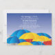 Una colorida invitación a la ducha de matrimonio con paraguas abiertos contra una lluvia ligera.La tarjeta es fácil de personalizar con su redacción, fuente, color de fuente y elección de seis tipos de papel.