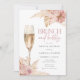 Esta encantadora invitación a bañarse en una ducha nupcial de color "brunch and bubbly" tiene un bonito diseño de pampas con flores secas, suave acuarela rosa suave y elementos florales y una brillante copa de champán. La parte trasera está más detallada con más pampas y flores y un bonito fondo rosa rubor.
