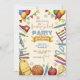 Invitación para el tema escolar con un fondo blanco roto que está enmarcado con banderas fiestas, globos y útiles escolares. Perfecto como un regreso a la invitación escolar, fiesta de fin de año escolar, eventos escolares y más. La tarjeta es fácil de personalizar con su texto, fuente y color de fuente. ¿No es exactamente lo que buscas? Todos nuestros productos pueden ser personalizados diseñados para satisfacer sus necesidades sin cargo adicional. Simplemente contacte con nosotros en askpixieprints@aol.com. Productos de coordinación disponibles a petición del cliente sin cargo adicional.