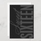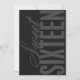 Invitación a la fiesta de cumpleaños de 16 años, dulce y moderno. El gris oscuro con letras grises claras dice "Dieciséis dulce". Fiesta detalles en la espalda.