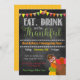 Impresionante y festivo, esta invitación de la fiesta de Acción de Gracias o de Amigo es ideal para un fiesta festivo y divertido. El Invite presenta un elegante fondo de pizarra de imitación y un pavo de otoño festivo. Comenzó bien tu fiesta de acción de gracias o de amistad... esta invitación marcará de inmediato el ánimo.