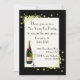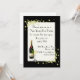Invitación festiva de Nochevieja hecha en crema con un marco negro decorado con remolinos amarillos y ráfagas de estrellas. Una botella de champán y de champán en la esquina inferior izquierda. Personalice el texto para leer lo que desee. Excelente invitación para fiestas de vacaciones.