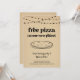 Pizza gratis (¡en nuestro nuevo lugar!). Disfrute de una divertida invitación a la casa que pone el foco en... pizza! El arte es dibujado a mano.