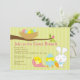 Nuestra encantadora invitación a la fiesta de Pascua de Pascua incluye el conejo más lindo con una chica rosa de Pascua, una chica azul y una rama floral con un nido de aves lleno de huevos. Personalizar con su información personal de fiesta de Pascua y está listo para irse.