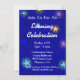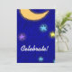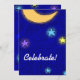 Una invitación a la celebración personalizado con guion y letras en bloque y elegante arte vintage de una colorida luna brillante y estrellas contra un cielo azul. Personalizar para cambiar las fuentes, agrega tu logotipo y mucho más, incluso guarda tu diseño para más adelante.