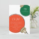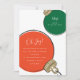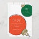 Ilustracion moderno de un estilo retro de navidad roja y verde adorno con las palabras "Oh Alegría" en escritura blanca y tipografía contemporánea. Estas invitaciones son perfectas para fiestas de intercambio de adornos de Navidad.