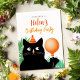 Invitación a fiesta de cumpleaños con gato negro