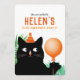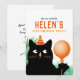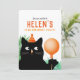Invitación a fiesta de cumpleaños con gato negro y