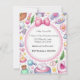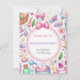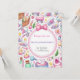 Una invitación moderna y de diseño a una fiesta de cumpleaños en el spa de chicas jóvenes. Un bonito fondo colorido con todas las cosas relacionadas con el spa para los chicas jóvenes. Maquillaje, pantuflas, arcos, pociones y un lindo borde enmarcando el texto para la invitación a la fiesta de dormir. Esta invitación está lista para ser personalizada con la información del fiesta en la parte delantera y trasera como quieras.