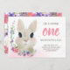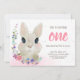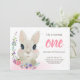 Envíe estas invitaciones a amigos y familiares para invitarlos a sus hijos a una fiesta de cumpleaños amable. Este diseño es perfecto para las niñas en primer cumpleaños. Estas invitaciones a los conejitos florales dulces cuentan con un conejito encantador y flores con acuarela rosa. Personalice su invitación con los detalles de su evento en una hermosa tipografía decorativa. Perfecto para una fiesta de cumpleaños de primavera o una invitación de Pascua.