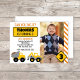 ¡fiesta En Construcción! Esta invitación a la fiesta de la construcción incluye camiones de construcción, carteles de carreteras y una foto del invitado de honor.