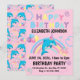 Adorable invitación a fiesta de cumpleaños de delfín, en rosa. ¡Personalice estas invitaciones con cualquier texto y fuente que desee! Estas invitaciones están disponibles en múltiples colores para que coincidan con su tema de delfín y decoración de la fiesta. ¡Encuentre más diseños en www.hotpocketgraphics.com