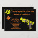 Empieza tu celebración con una invitación láser para ese niño o chica especial de cumpleaños. Esta es una invitación brillante y puede ser usada para un fiesta láser de etiquetas, o incluso para un fiesta de paintball. El fondo es negro. Tiene una gran pistola láser amarilla. En el otro lado hay dos blancos brillantes y coloridos. Los dos objetivos son amarillo y naranja. Personalice la invitación con la información de su fiesta. Consulte otros productos de esta colección para darle el toque perfecto a su fiesta. ©Ilustraciones JW