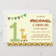 Invitación de cumpleaños con tema de jirafa de safari.