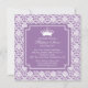 Comience bien con su fiesta con nuestra elegante Invitación de Cumpleaños que incluye una hermosa corona de princesa sobre un fondo morado de damasco. Perfecto para una invitación a la fiesta de cumpleaños de la princesa o cualquier cumpleaños de niñas. Sólo personaliza con tu información y estás listo para ir! En nuestra tienda también están disponibles artículos que coinciden, como sellos de cumpleaños, pegatinas de favores, tarjetas de agradecimiento y pegatinas de agradecimiento.