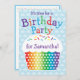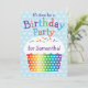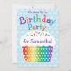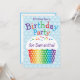 Invitación a la fiesta de cumpleaños de los niños con pastel de arcoiris. ¡Hay fiestas de coordinación disponibles!