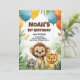 Prepárate para una aventura salvaje con esta adorable invitación de cumpleaños del safari de la jungla. Con bonitos animales para bebés, vegetación tropical y globos juguetones, este diseño es perfecto para un fiesta divertido y emocionante con la temática de la jungla. Fácilmente personalizar con el nombre, edad y detalles del evento de su hijo para una celebración especial.