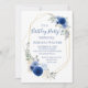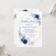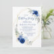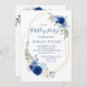 Elegante acuarela azul marino invitaciones de cumpleaños florales con marco dorado para ella en flores azul bonito.
