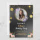 Invitación a fiesta de cumpleaños floral negra y dorada