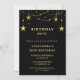Invitación a fiesta de cumpleaños número 20 Black con Estrellas Doradas