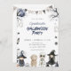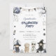 ¿Planeando una fiesta de Halloween espumosa? Reúne sus fantasmas y duendes favoritos con una invitación de fiesta de personalizable para niños de Halloween para un fiesta de disfraces de Halloween. Edita fácilmente tu invitación vocal con todos los detalles de la fiesta de Halloween. Esta invitación editable a la fiesta de Halloween para niños marca el tono para tu fiesta de disfraces de Halloween. La colección GILLIAN presenta un fondo blanco con una luna espeluznante y árboles embrujados y pequeños fantasmas, con disfraces de halloween desde una momia y una bruja, hasta un mago y un esqueleto. Una linterna de jack-o-lantern y algunas arañas y murciélagos junto con una poción y un pirulí completan esta plantilla editable de invitaciones de la fiesta negra de Halloween. Una combinación de sans serif, script y un tipo de letra de terror se juntan para una espeluznante invitación a fiesta de halloween para niños.
