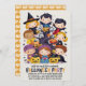 Cute Kids Halloween Costume Fiesta Tarjeta de invitación de vacaciones Es la manera perfecta de invitar a los amigos de tus hijos a una fiesta de Halloween espeluznante y dulce donde pueden venir vestidos como sus monstruos favoritos. Un divertido patrón de Trick o Treat en la parte trasera.