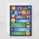 ¿Tienes un fiesta de emoji? Esta invitación es perfecta para emocionar a sus huéspedes. La invitación es colorida, luminosa y divertida, con iconos de emoji y bloques de texto con los detalles de la invitación. Es genial, inteligente y de moda. Los colores principales son el azul, el naranja y el verde. ¡La parte de atrás de la invitación tiene un con un gorra fiesta! ¡Es ideal para los cumpleaños y todas las ocasiones, también para los niños o para todas las edades!