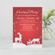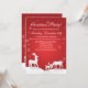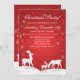Invitación de vacaciones a la colección de Renos Blancos y Copos de Nieve. Una familia de renos blancos se frotan en las nevadas colinas mientras que los copos de nieve les flotan. Un fondo rojo le da un toque cálido y festivo a la decoración. ¡Ideal para los niños o para los niños en el corazón!