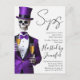¡Alcen sus copas para una elegante noche de brujería con esta Invitación para fiesta de Halloween con esqueleto en morado! Con un esqueleto elegante con un esmoquin morado y sombrero de copa alto sosteniendo champán, este diseño combina el encanto gótico con el glamour de una fiesta de cócteles. Perfecto para veladas de Halloween elegantes, fiestas de disfraces o reuniones espeluznantes y chic. Personalice el texto con los detalles de su evento y organice una noche de sofisticación y diversión espeluznante.