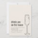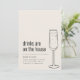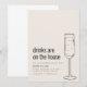 Invite a amigos y familiares a celebrar tu nuevo hogar con una encantadora invitación a una fiesta de inauguración con el tema divertido "Las bebidas corren por cuenta de la casa". El fondo es un cálido beige, que crea una atmósfera acogedora y acogedora. En el lado izquierdo, los detalles de la fiesta se presentan en una fuente negra simple, lo que garantiza claridad y elegancia. A la derecha, una ilustración minimalista de un champán añade un toque de diversión y carácter al diseño. Esta invitación combina perfectamente un tema ligero con una estética elegante, lo que promete una celebración de inauguración del hogar encantadora y memorable.