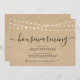 Invitación a fiesta de inauguración de casa rústica: luces de hadas en un fondo kraft para invitar a sus invitados a su maravillosa fiesta de inauguración de casa rústica.