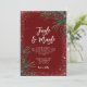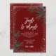 Una hermosa invitación "Jingle y mingle" invierno/vacaciones/navidades fiesta/cena con fondo rojo, y un helado borde de copos de nieve, con follaje de invierno/bayas rojas y un falso borde purpurina para algunas celebraciones. Fácil de editar con su propia información. En nuestra tienda hay otros artículos para coordinar.