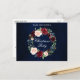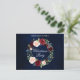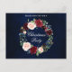 Elegante color de agua azul fondo con acuarela Borgoña Marsala Navidades florales invitación postal del partido de la corona floral. Incluye hermosos rosas y vegetación botánica.