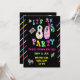 ¡Festa como si fuera 1988! Esta invitación a fiesta retro es una celebración de la década de los 80. Todos los colores chillones sobre un fondo negro.