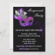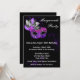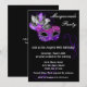 Invitación a Fiesta de Máscaras. Una invitación elegante y sofisticada que presenta una máscara de máscaras plateada y púrpura perfecta para una celebración de dulces dieciséis o Mardi Gras.
