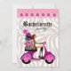 Invitación a fiesta de moda Mujer en scooter Leopardo Rosa ideal para una despedida de soltera.