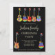 Invitaciones a fiesta de Navidad de Guitar Festive con un toque psicodélico genial. Guitarras acústicas, guitarras eléctricas e ilustraciones de guitarras semi precisas, cada una con un divertido sombrero de Santa en una roca negra de rock and roll genial. Personaliza esta invitación de fiesta festiva colorida y genial y difunde alegría navideña. Ideal para músicos, guitarristas y amantes de la música. Arte original de la artista Catherine Sweetman