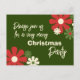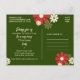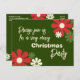 Invitación del Partido Navidades Florales Retro. Un diseño agradable y alegre con una estética vintage de los años 70 y un divertido ambiente navideño. En rojo, verde y crema, con flores de color gris. El texto se puede personalizar. Por Kierkegaard Design Studio.