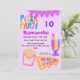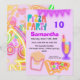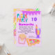 ¡Prepárate para una fiesta de cumpleaños número 10 totalmente radical! Esta invitación eléctrica de 5x7 estalla con vibras neón de los 80, con una divertida pizza, papas fritas, bebidas y banderines con texto personalizado. El titular vibrante "PIZZA PARTY" en fuente retro establece el ambiente para una celebración inolvidable.