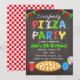 La invitación a fiesta de pizza en pizarra emociona a tus amigos y familiares para ir a la Pizzería a tener una fiesta de pizza. Solo mirarlo me da hambre ya que imita el tablero del menú en tu restaurante italiano favorito.